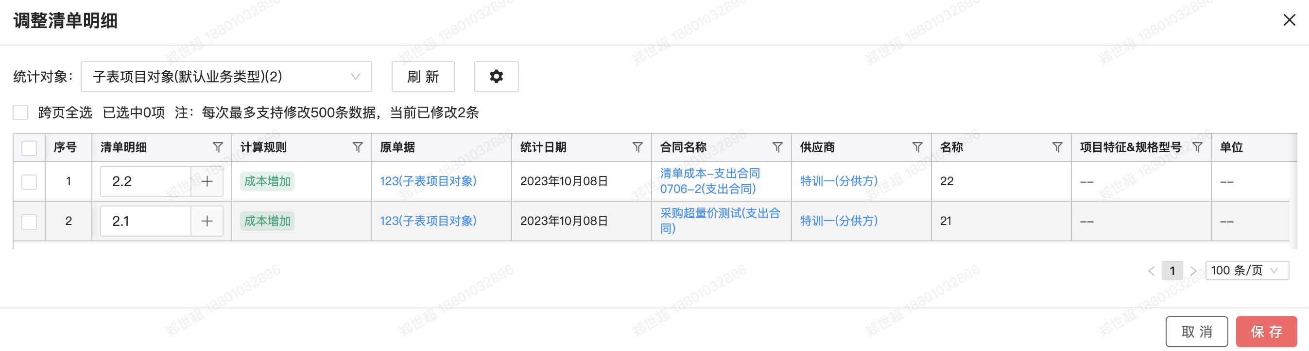 ● 數(shù)據(jù)穿透支持修改&批量修改成本清單明細(xì)