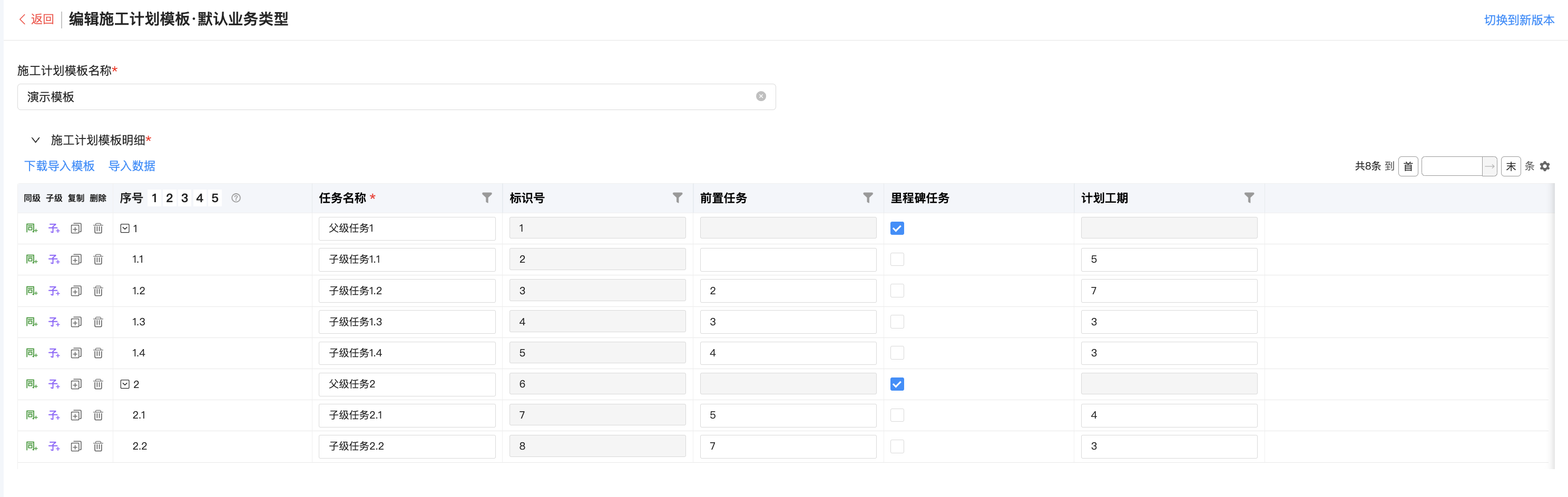 ● 施工計(jì)劃&配套計(jì)劃支持新增計(jì)劃模板