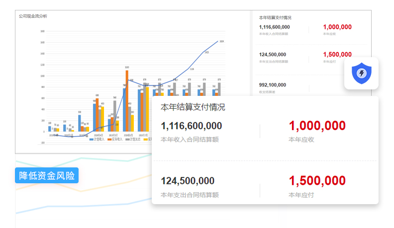 通過工程項目管理軟件,將企業多個項目的信息流打通,完成資源的合理調配和平衡。同時優化公司的管理流程,通過靈活的流程疏通合同、收入、物資、成本等業務線的管理,使各環節的人責權劃分更為清晰和合理,打破傳統企業部門駁雜人員冗余,互相踢皮球責任不清的狀態,使得公司管理流程簡潔化、實用化,提升管理效率。